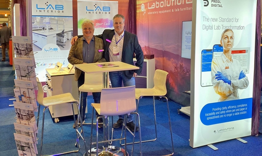 Laborama Expo is the trade fair for the laboratory sector in Brussels, Belgium. Laborama offers distributors and producers of laboratory equipment a platform where they can show their products, meet with potential clients, stay in contact with their existing relations and enhance their network within the sector. Company Labolutions, our distributor for the Benelux region, showcased our smart furniture Pregl Digital at the fair. Visitors showed great interest in the functionality of the smart furniture and also asked additional questions.